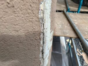 経年劣化してくると灰色に硬くなり、ボロボロと崩れたり割れたりして、雨水の侵入を防ぐ力もなくなってきます。