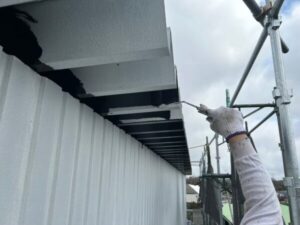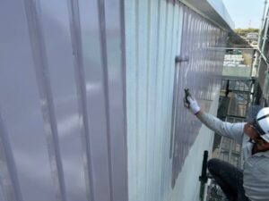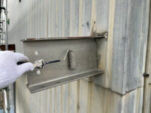 外壁も同様に、ケレン・清掃の後、錆止め塗装と上塗りで仕上げていきます。