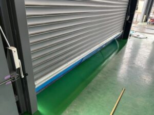 床面も滑らかで耐久性のある仕上がりとなり、シャッターの開閉もスムーズに行える状態となっています。