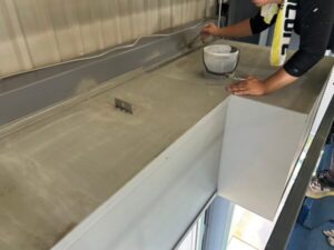 シャッターの動作に支障が出ないよう、仕上がりの厚みや平滑性にも注意しながら施工を進めています。