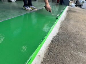その後、「フロアトップアクアフォルティス」による塗床施工を行い、均一で強度のある塗膜を形成しました。